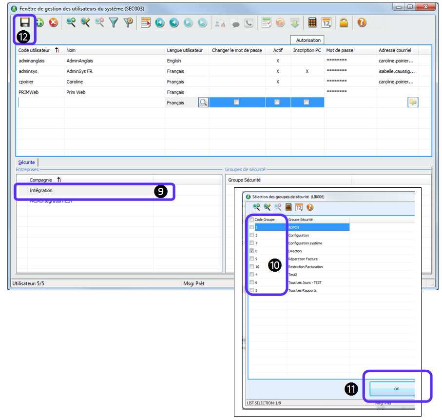 7.Cochez la case « Actif ». Si cette case n’est pas cochée l’utilisateur ne pourra utiliser PRIM.