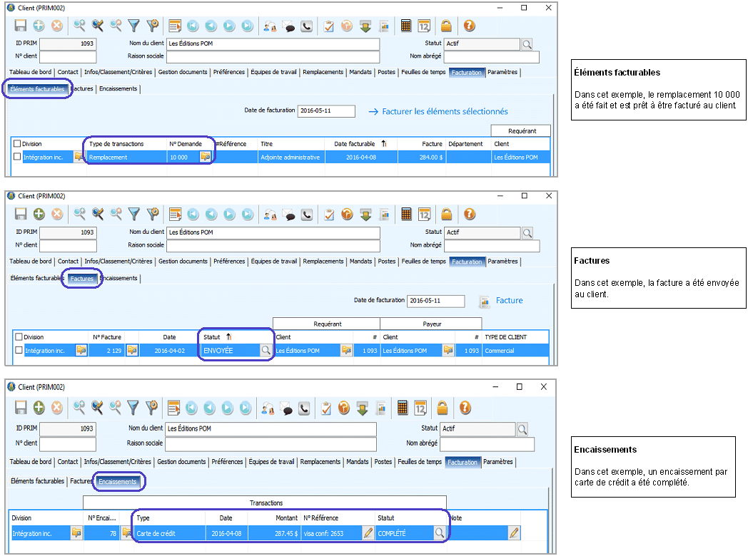 Consultez la section « Paramètre facturation du dossier client » du module « Comptabilité » pour les détails et les procédures.
