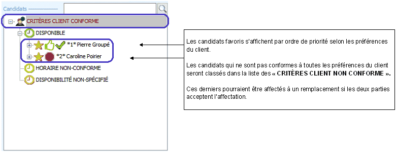 À la suite d'une recherche pour l'affectation d'un candidat, le chiffre inscrit dans la colonne « Priorité » s'affichera dans la fenêtre « Gestion des remplacements ».