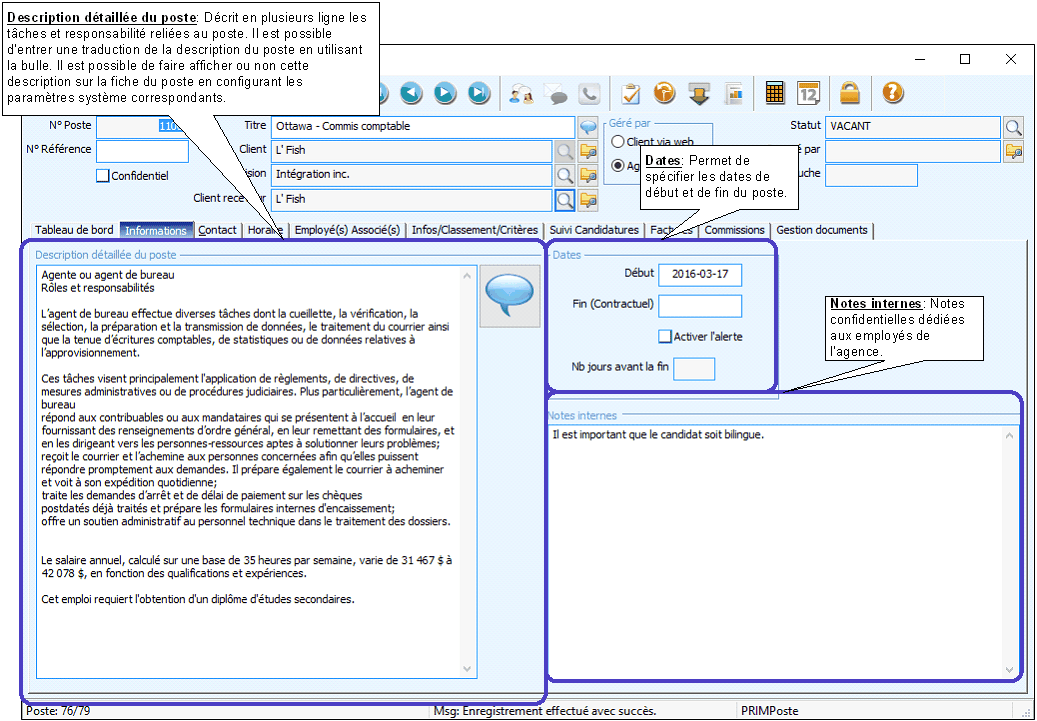 Poste: Onglet "Info/classement/Critères"