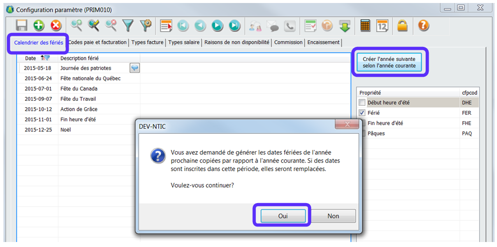 4-Si les fériés de l’année suivante ne sont pas dans la liste, cliquez sur le bouton.
