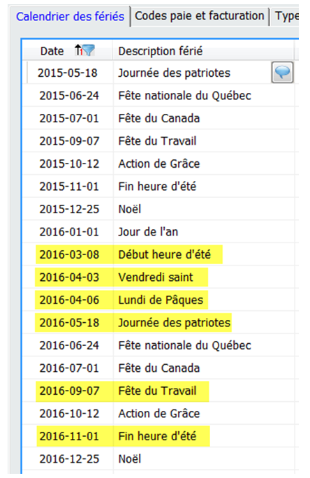 Il faut être en 2015 pour que les fériés de 2016 soient créés via le bouton.