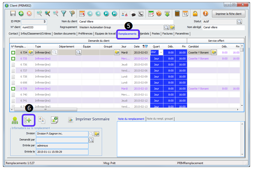 4.Recherchez le client qui demande un remplacement.