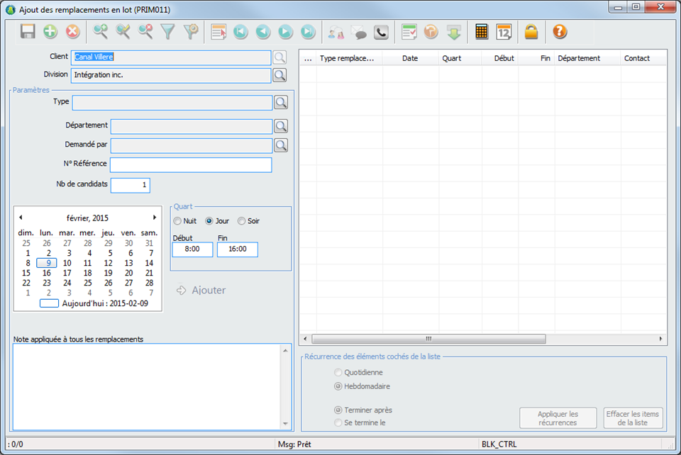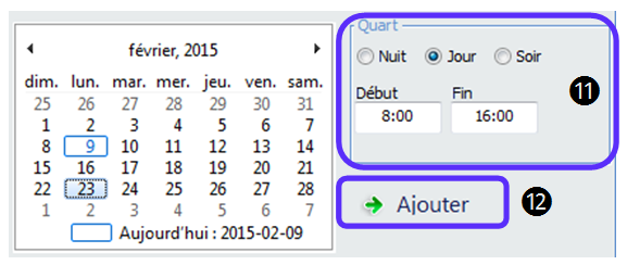 11.Sélectionnez la date et le quart à laquelle le client veut un candidat, changez les heures s’il y a lieu.