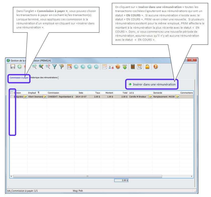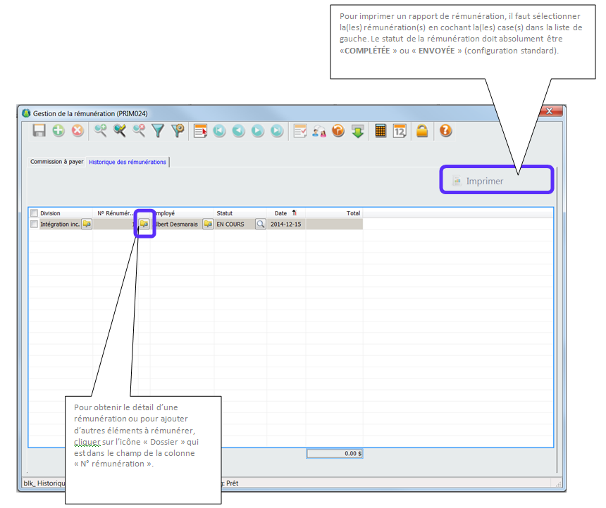 Les demandes qui apparaissent dans la fenêtre «Gestion de la rémunération» dans l’onglet «Commission à payer», sont toutes les demandes qui ont un statut «Facturée» ou «Terminée».