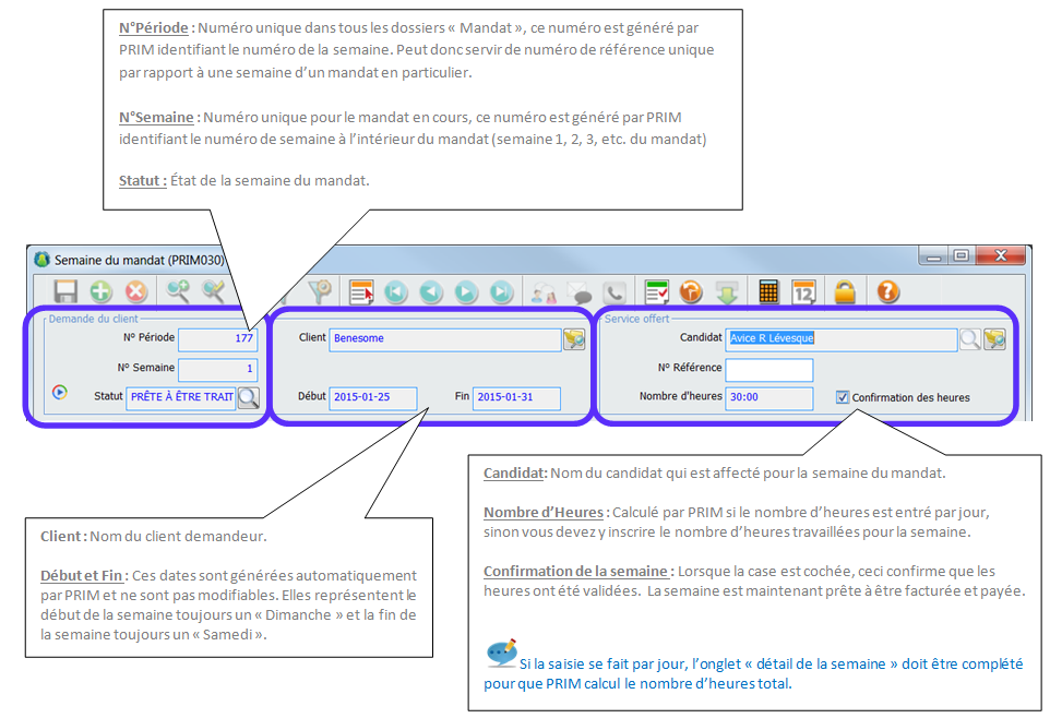 Mandat-Semaine: Onglet "Détails de la semaine"