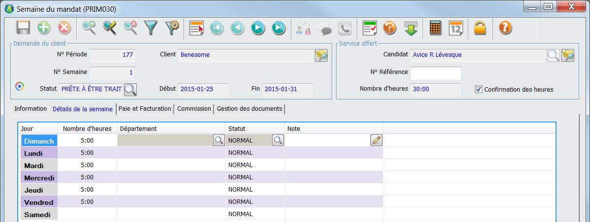 Mandat-Semaine: Onglet "Informations"