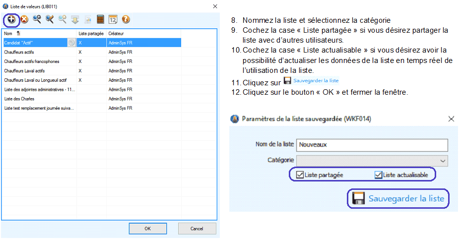 Les listes sauvegardées demeurent dans PRIM tant que vous ne les supprimez pas.