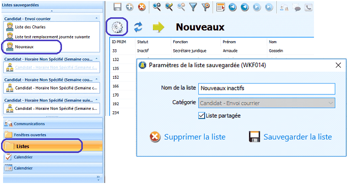 Dans cet exemple nous utilisons le dossier « Candidat» pour créer une liste de tous les candidats actifs.
