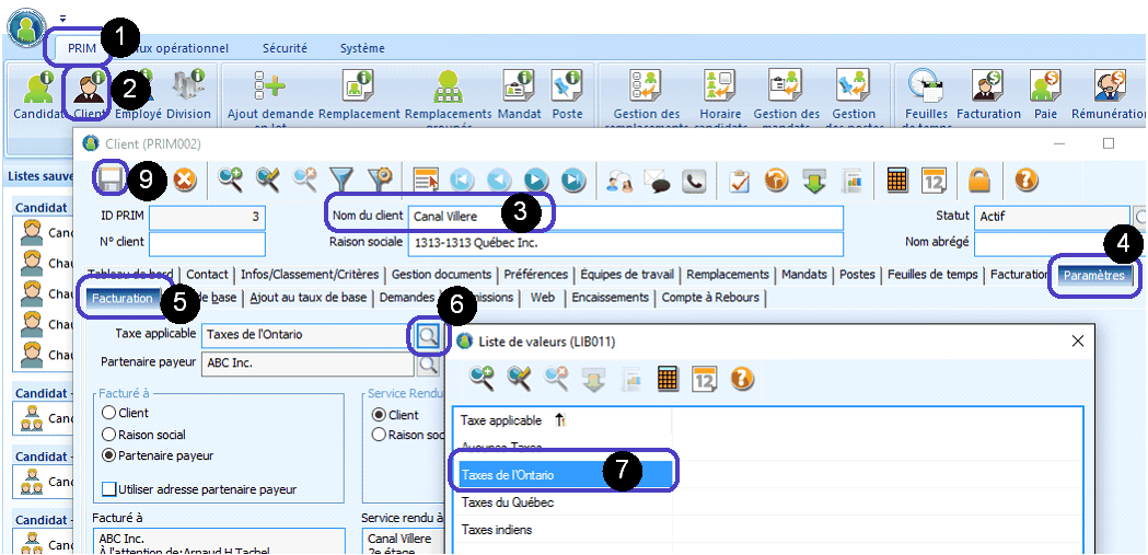 7.Sélectionnez le type de taxe.
