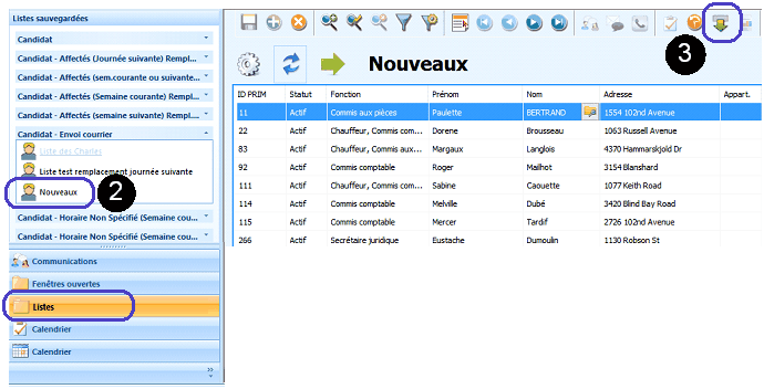 1.Cliquez sur le volet « Listes ». 2.Sélectionnez la liste à exporter. 3.Cliquez sur l’icône