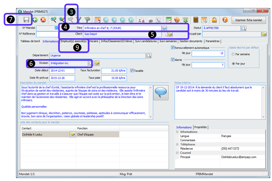 Par défaut les employés qui sont déjà associés au candidat et au client seront insérés automatiquement.