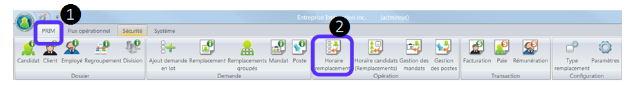 1-Dans le ruban « PRIM ». 2-Cliquez sur le dossier « Horaire remplacements ».