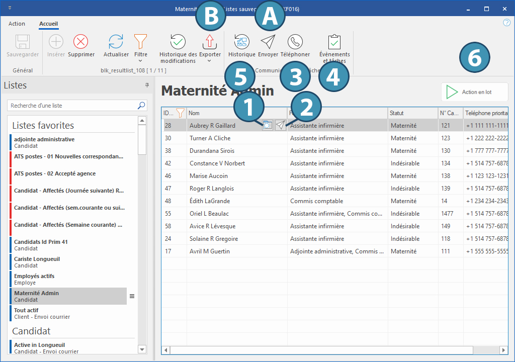 Dans une fenêtre de liste, après avoir organisé la liste selon vos besoins en utilisant des filtres, vous pouvez :