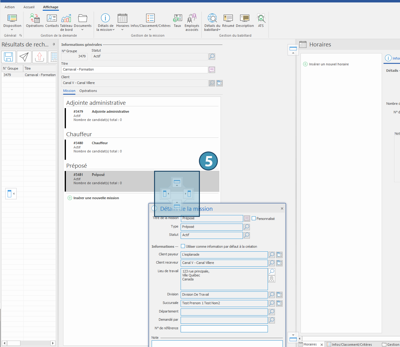 Dans les fenêtres qui disposent d’un ou plusieurs volets, il est ainsi possible de déplacer, agrandir ou réduire les volets affichés dans la fenêtre, en sélectionnant l'entête pour déplacer, ou en faisant glisser la bordure du volet (1). Il est également possible de regrouper plusieurs volets sous la forme d’onglets temporaires (2)