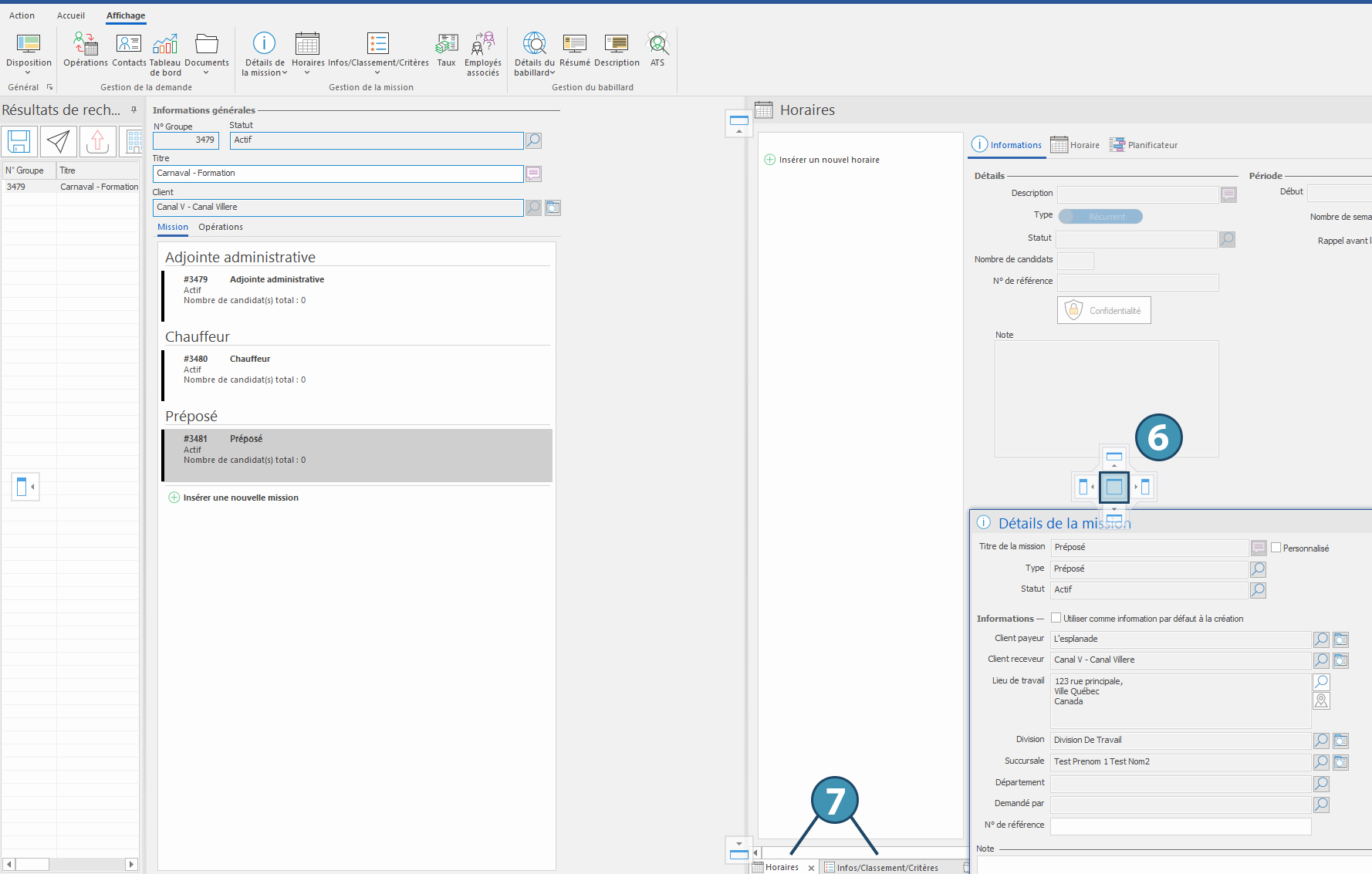En déplaçant un volet sur un volet déjà existant, la partie centrale du module de stationnement vous permet de placer le volet sur le précédent (6). Si vous relâchez le bouton gauche de votre souris, les deux volets seront regroupés (7). Vous pouvez alors naviguer de l’un à l’autre à partir des onglets situés en bas du volet.