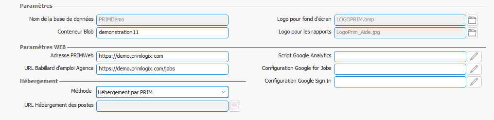 c.Champ URL hébergement des postes dans la fenêtre Gestion des entreprises