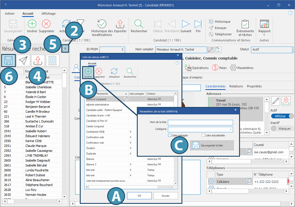 Lorsque vous créez une nouvelle liste, donnez-lui un nom et attribuez-lui une catégorie, selon celles proposées en fonction de la configuration de votre logiciel. Ensuite, décidez si cette liste sera ou non partagée aux autres utilisateurs du logiciel et si elle peut être actualisée. Enfin, sauvegardez la liste (C)