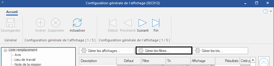La gestion des filtres permet de sélectionner et configurer les éléments pour lesquels un filtre récurrent sera activé.