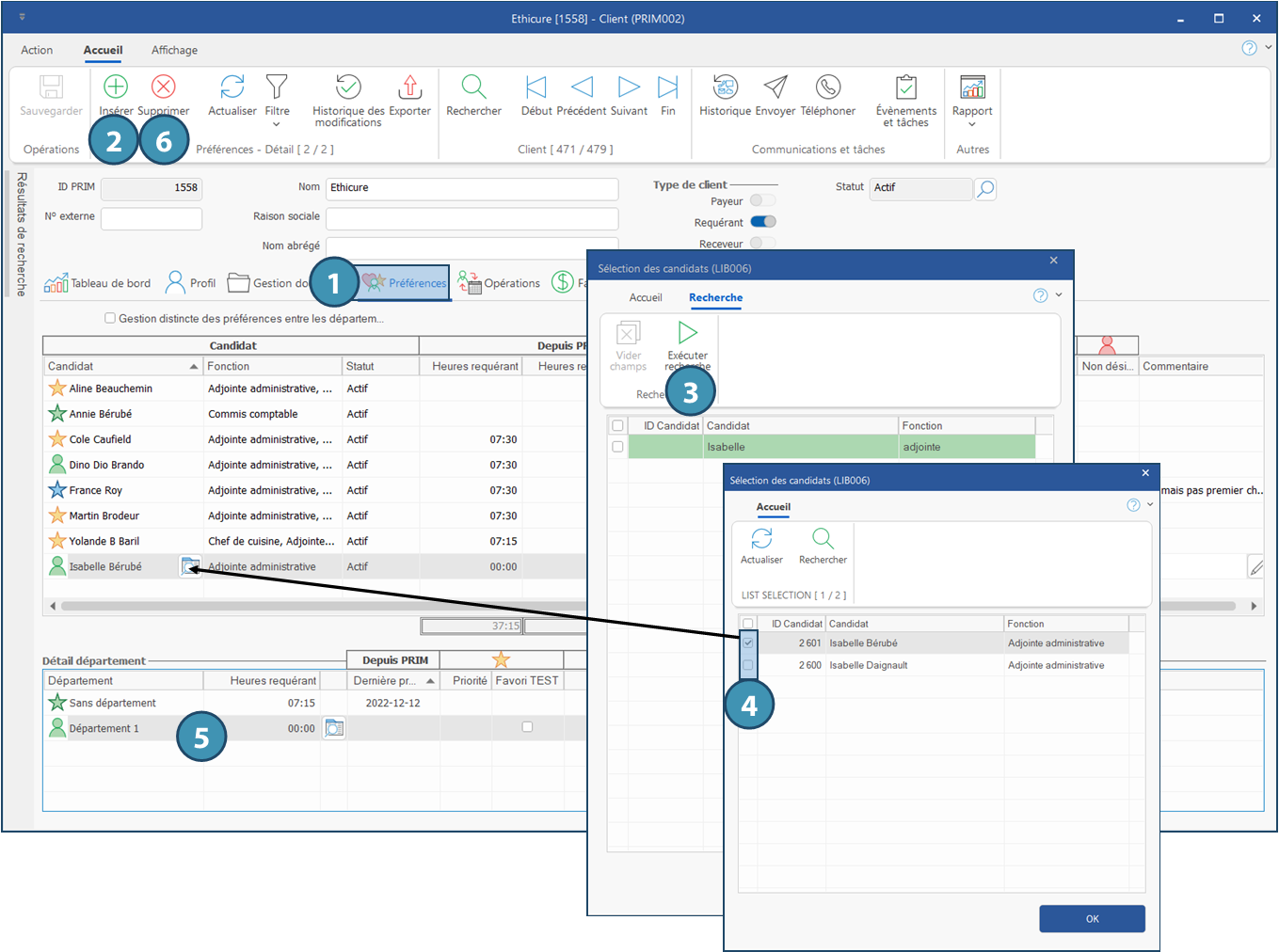 L'onglet « Préférences » rassemble les appréciations, soit du client envers le candidat ou du candidat envers le client, c'est pourquoi les deux sont traités conjointement.