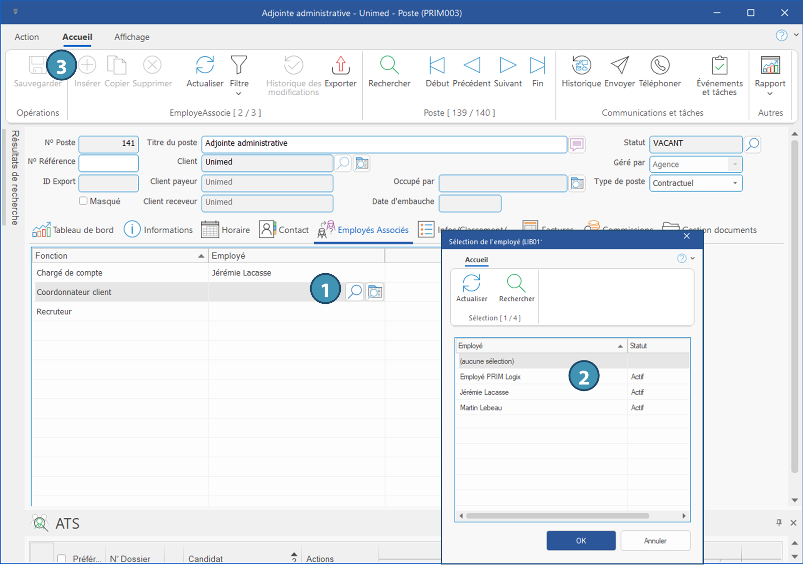 Selon le statut du poste, il peut être impossible d'associer un employé à une fonction, cette étape doit se faire à la création du poste.