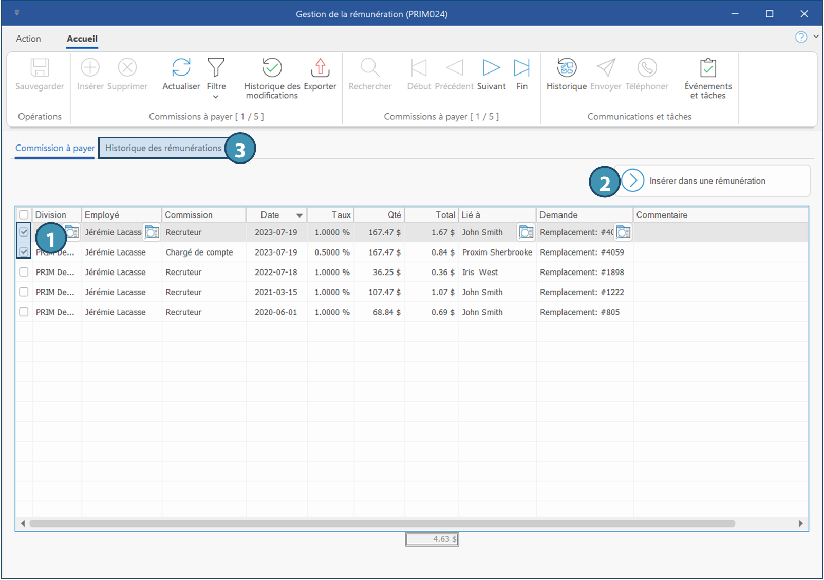 PRIM ne fait pas la gestion des déductions sur la rémunération. S'il y a lieu, les données seront exportées vers le service de la paie de votre entreprise.