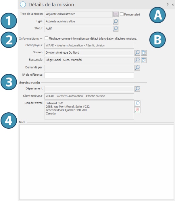 Ce volet indique les informations détaillées liées à chaque mission telles que les clients, le lieu de travail ou encore le numéro de référence. Surtout, il détermine le type d’emploi qui sera recherché dans le cadre de cette mission.