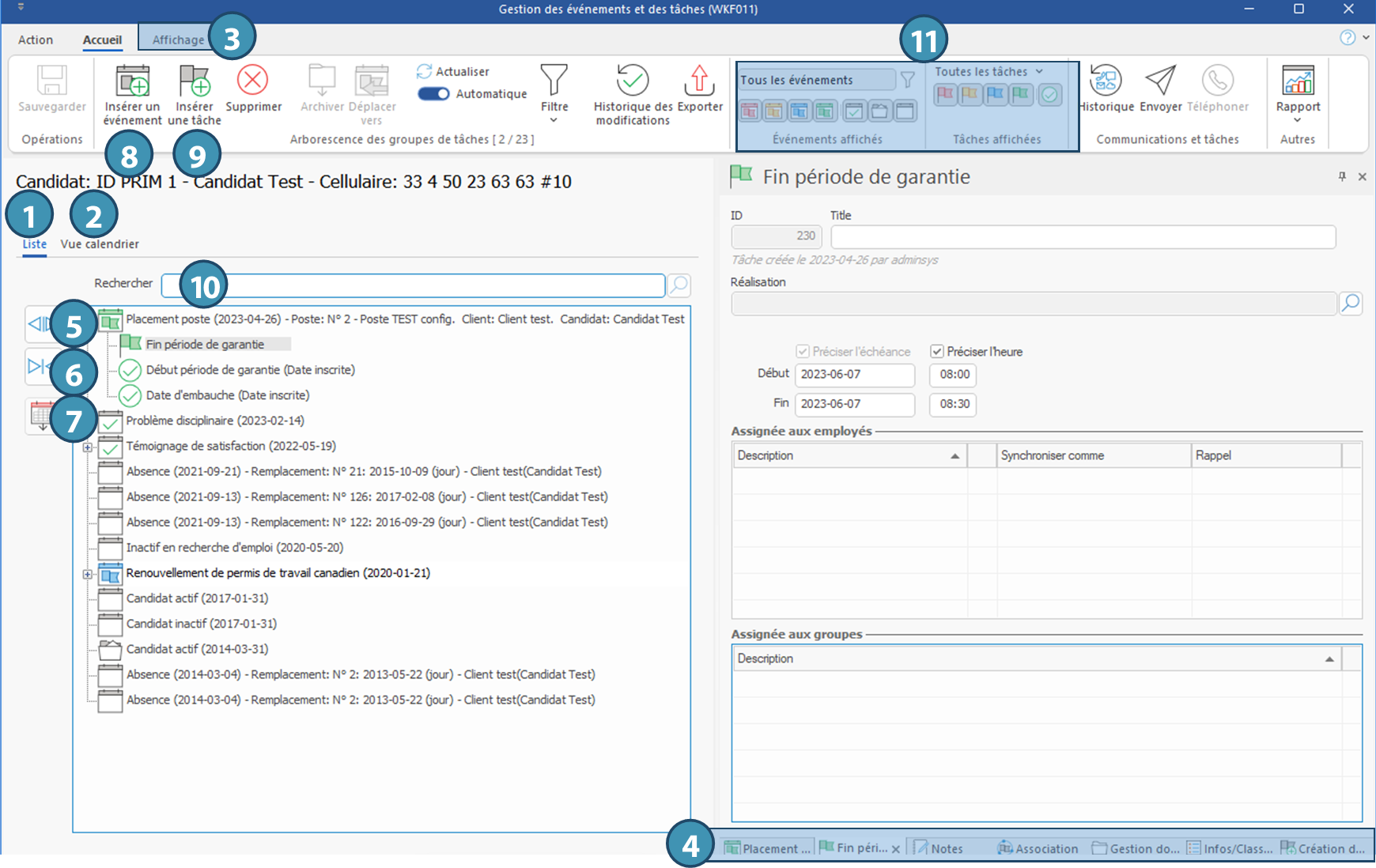 Fenêtre - Gestion des événements et des tâches (WKF011)