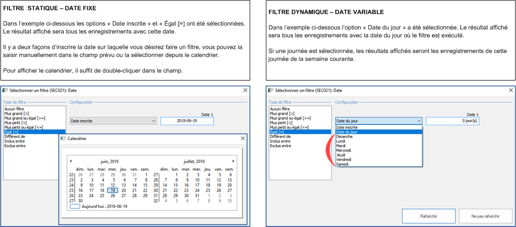 Sur une date, il est possible d'appliquer un filtre statique ou un filtre dynamique, en voici deux exemples.