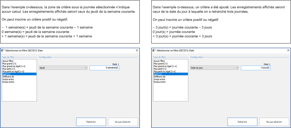 Un filtre peut aussi être appliqué avec des critères ou des champs calculés, en voici deux exemples.