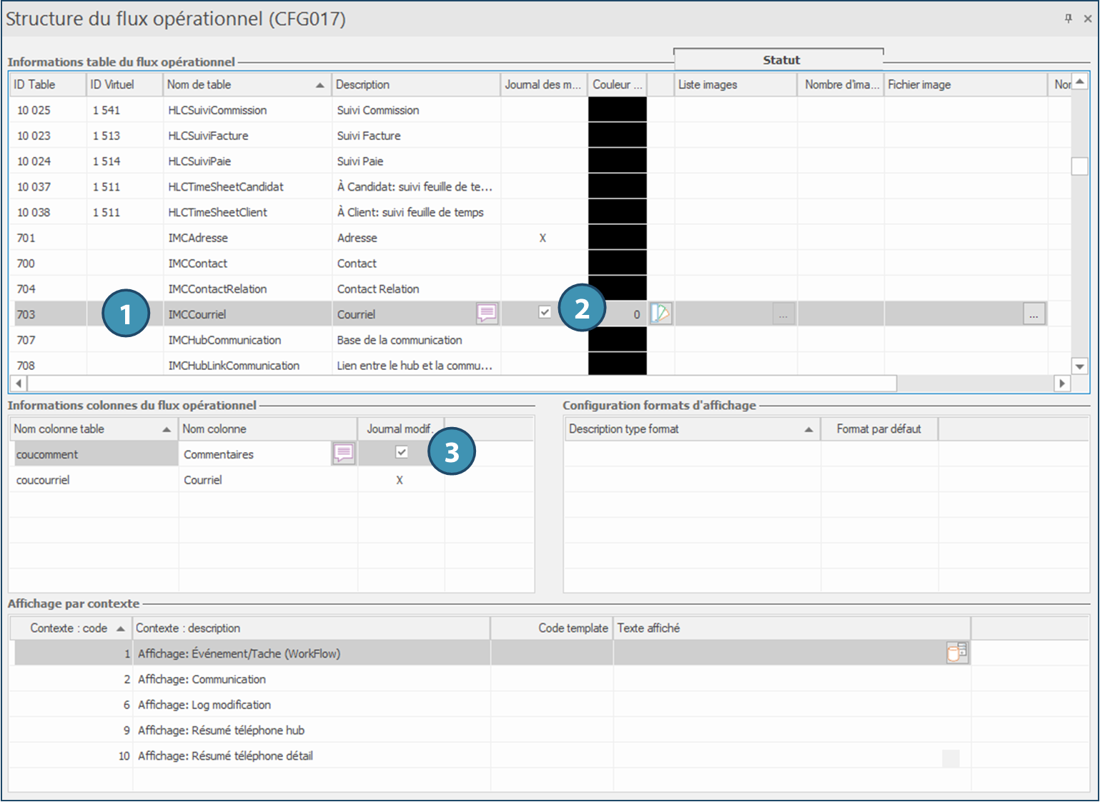 Dans la fenêtre de configuration, recherchez le volet "Structure du flux opérationnel (CFG017)".