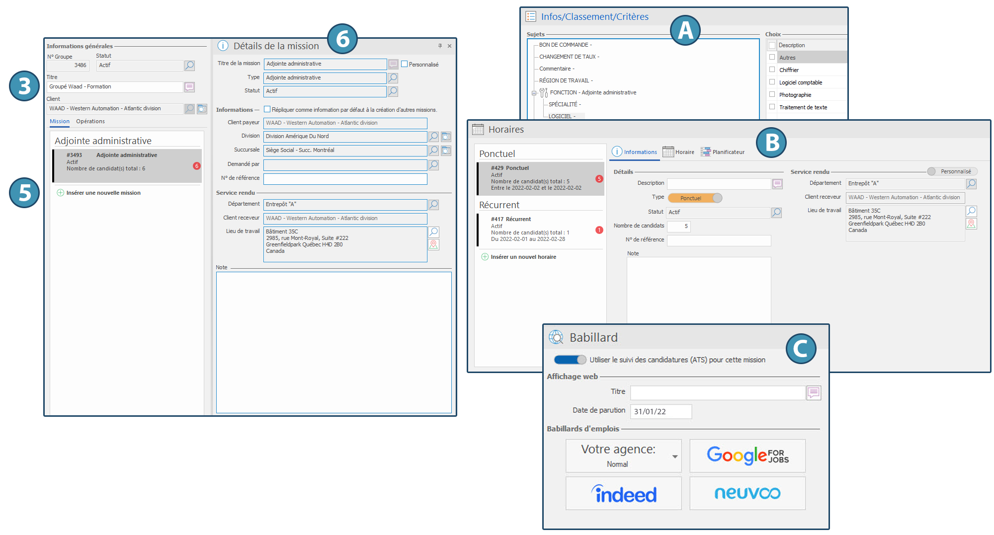 -Ajouter des critères et informations propres à la mission en utilisant le volet « Infos/Classements/Critères » (A)