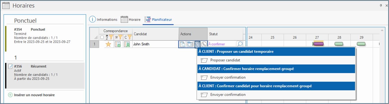 •Confirmer un candidat sur un horaire