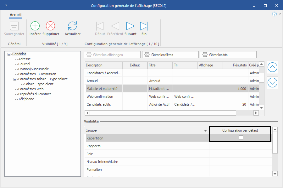 Veuillez noter que seuls les utilisateurs disposant des groupes de sécurité adéquats peuvent accéder aux fenêtres de configuration du logiciel. |