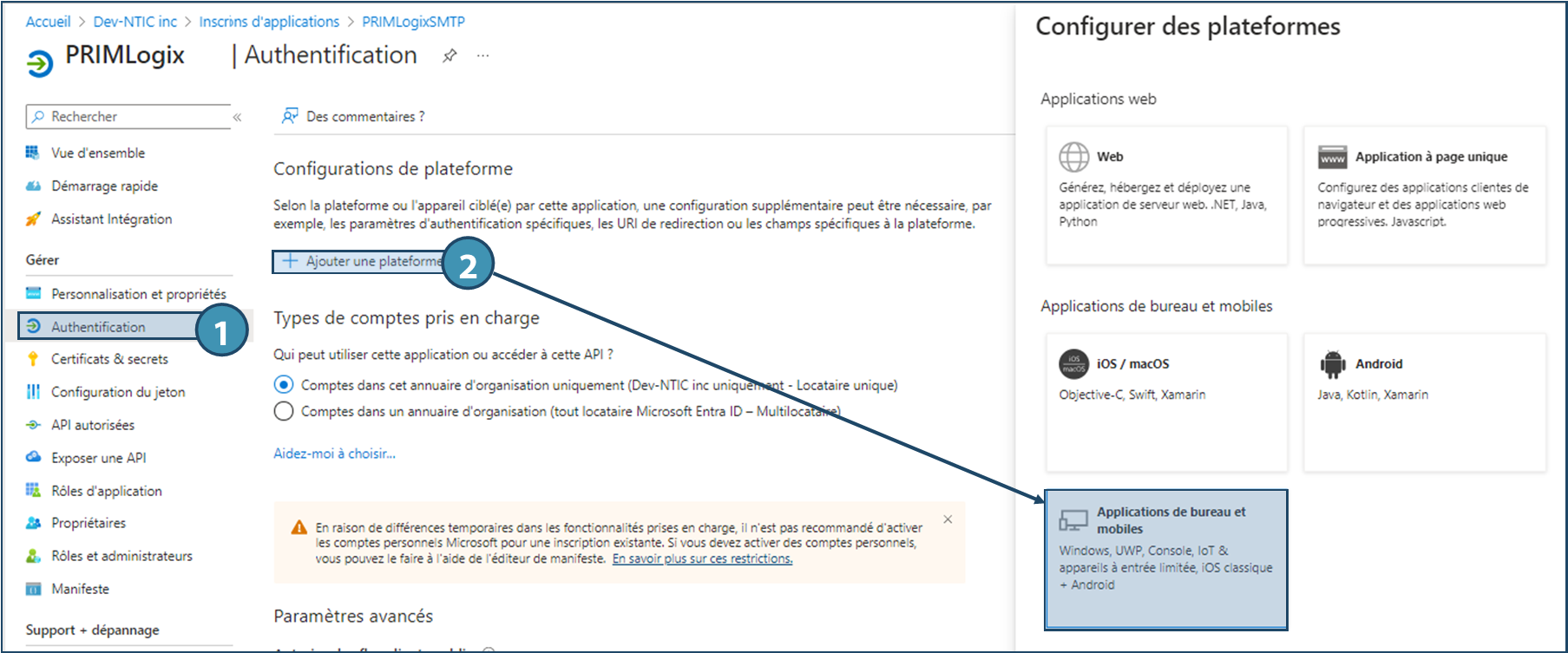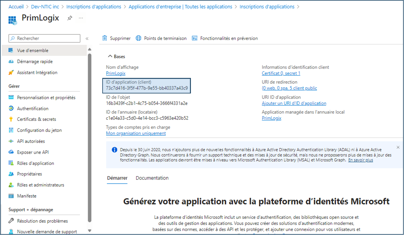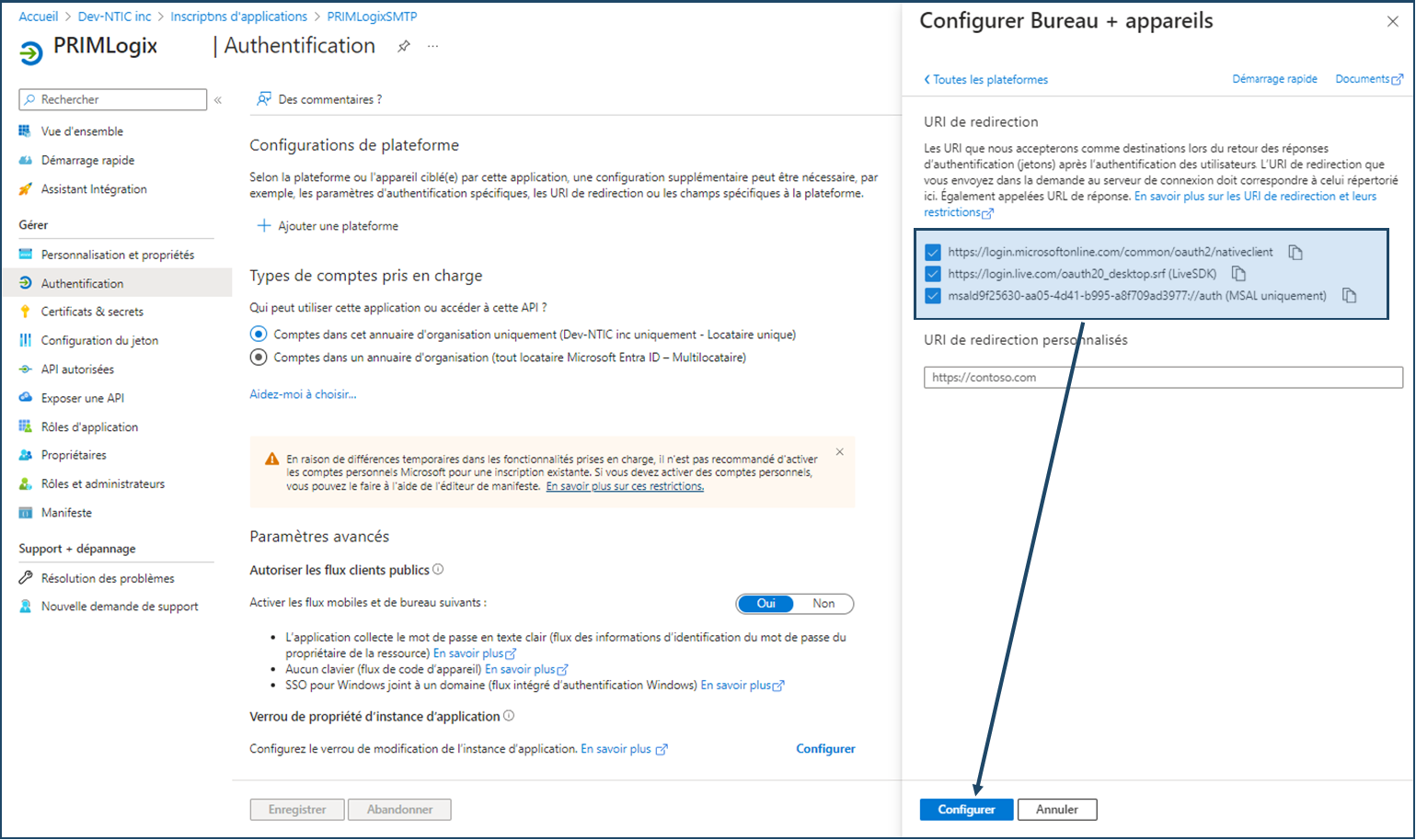 Depuis la mise en place du protocole d'authentification OAuth2 par Microsoft et la fin du protocole OAuth en octobre 2022, les utilisateurs qui souhaitent utiliser les protocoles SMTP ou IMAP d'Office 365 pour l'envoi et la réception de courriels dans PRIM devront au préalable avoir configuré ces protocoles dans PRIM, après avoir procédé à l'inscription de l'application et aux configurations nécessaires dans le compte Azure Active Directory. Ces procédures sont décrites ci-dessous.
