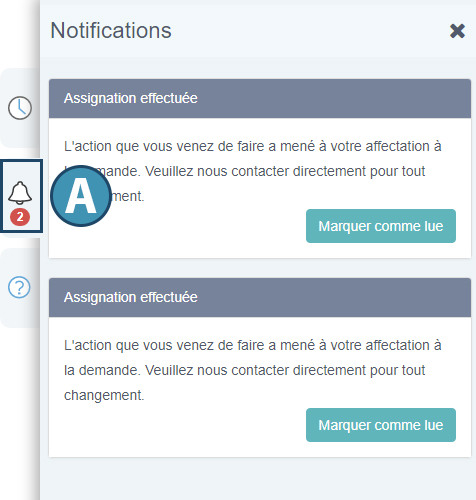 Les notifications sont des messages envoyés par l’agence à un ou plusieurs utilisateurs du portail Web. Il en existe deux types :