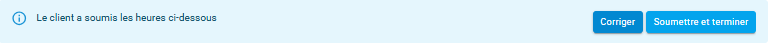Si le client a déjà déclaré les heures du candidat, ce dernier ne pourra éditer la feuille de temps directement, mais aura plutôt la possibilité de soumettre les heures déclarées par le candidat ou de les corriger, s'il y a lieu, en choisissant l'option corresponddante ci-dessous. Si le candidat clique sur l'option « Corriger », la feuille de temps passera en mode d'édition.