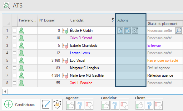 Utilisez les boutons d’action pour communiquer avec un candidat en particulier.
