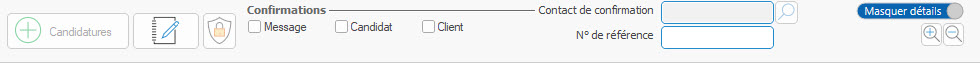 S'il est posssible de confirmer un quart ponctuel dans la fenêtre Quart (PRIM014) ou dans le tableau des quarts de la fenêtre de gestion des quarts, les demandes groupées sont confirmées dans le volet horaire et l'onglet planificateur de la demande groupée. En effet, une fois un candidat affecté à l'horaire, des cases de confirmation s'affichent au bas du planificateur lorsqu'un candidat à confirmer est sélectionné, comme ci-dessous. Il suffit donc de cocher les cases pertinentes pour la confirmation du candidat ou du client. Il est également possible de sélectionner le contact de confirmation s'il a été ajouté dans le client.